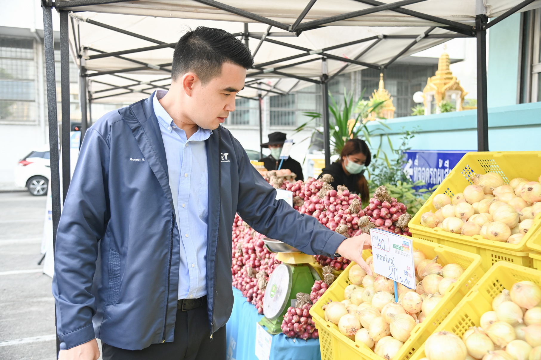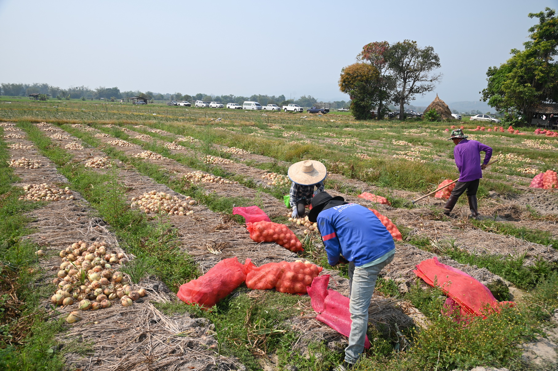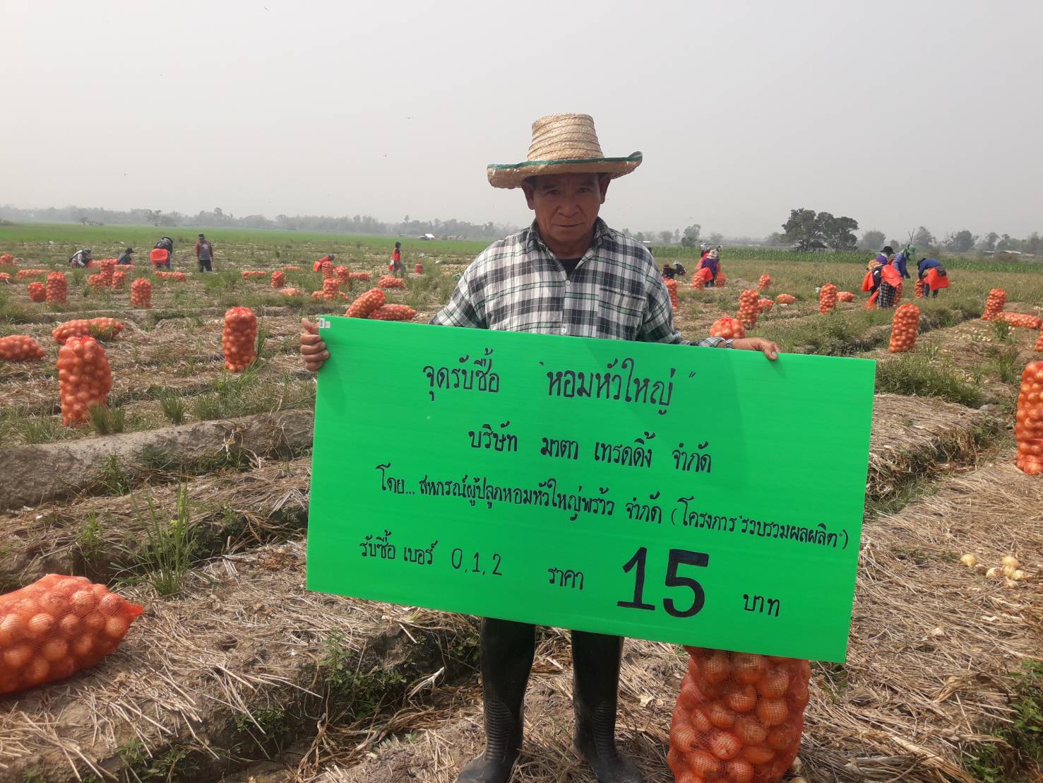 “ปีนี้ผลผลิตหอมหัวใหญ่คาดว่าจะอยู่ที่ประมาณ 800 ตัน ขณะนี้ถอนไปแล้วประมาณ 20-30% ปีก่อนหน้านี้พ่อค้าในพื้นที่รับซื้ออยู่ที่กิโลกรัมละ 10-12 บาท ราคานี้ยังไงเกษตรกรก็อยู่ไม่ได้ ยิ่งปุ๋ยแพงต้นทุนการผลิตยิ่งเพิ่ม ยิ่งไปกันใหญ่ แต่ปีนี้ราคา 15 บาทรับได้และเก็บผลผลิตได้เต็มเม็ดเต็มหน่วยก็พออยู่ได้”