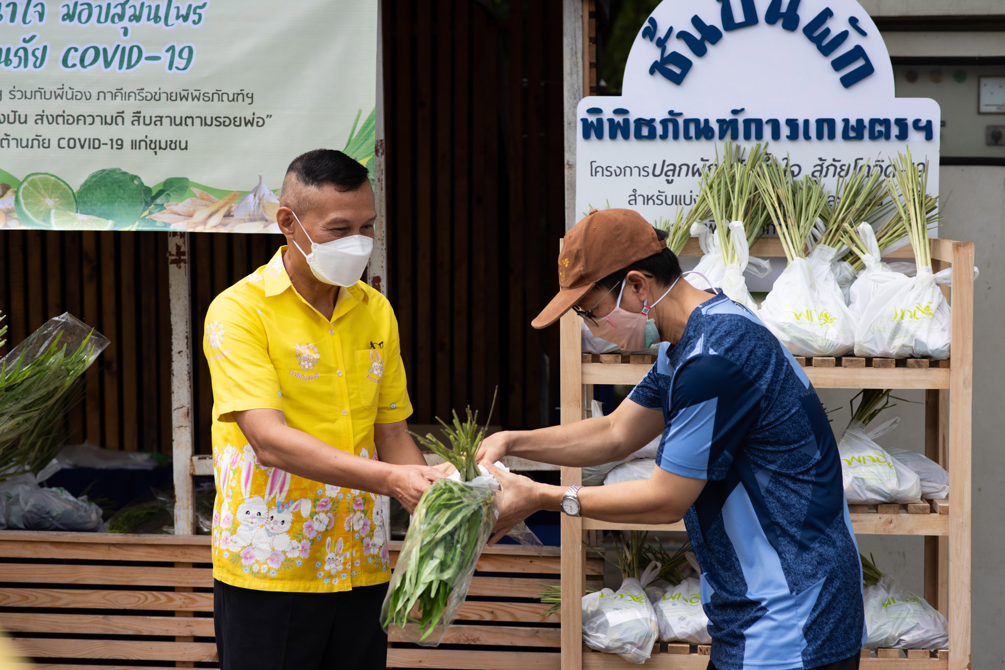 พลอากาศเอกเสนาะ พรรณพิกุล ผู้อำนวยการสำนักงานพิพิธภัณฑ์เกษตรเฉลิมพระเกียรติพระบาทสมเด็จพระเจ้าอยู่หัว เป็นประธานในพิธีเปิดกิจกรรม “ปันน้ำใจ มอบสมุนไพร ต้านภัยโควิด-19” ภายใต้ความร่วมมือของพี่น้องเครือข่ายพิพิธภัณฑ์เกษตรฯ ทั่วประเทศ เพื่อร่วมแบ่งปัน ส่งต่อความดี สืบสานตามรอยพ่อ เนื่องในโอกาสวันเฉลิมพระชนมพรรษา พระบาทสมเด็จพระวชิรเกล้าเจ้าอยู่หัว 28 กรกฎาคม 2564 จัดส่งสมุนไพรนานาชนิดที่มีฤทธิ์ในการสร้างภูมิคุ้มกันให้พี่น้องประชาชนดูแลตนเองช่วงสถานการณ์การแพร่ระบาดของโควิด -19 วันละ 200 ชุด หรือจนกว่าของจะหมด โดยสามารถติดต่อรับได้ที่ชั้นปันผัก บริเวณหน้าทางเข้าพิพิธภัณฑ์การเกษตรฯ ปทุมธานี