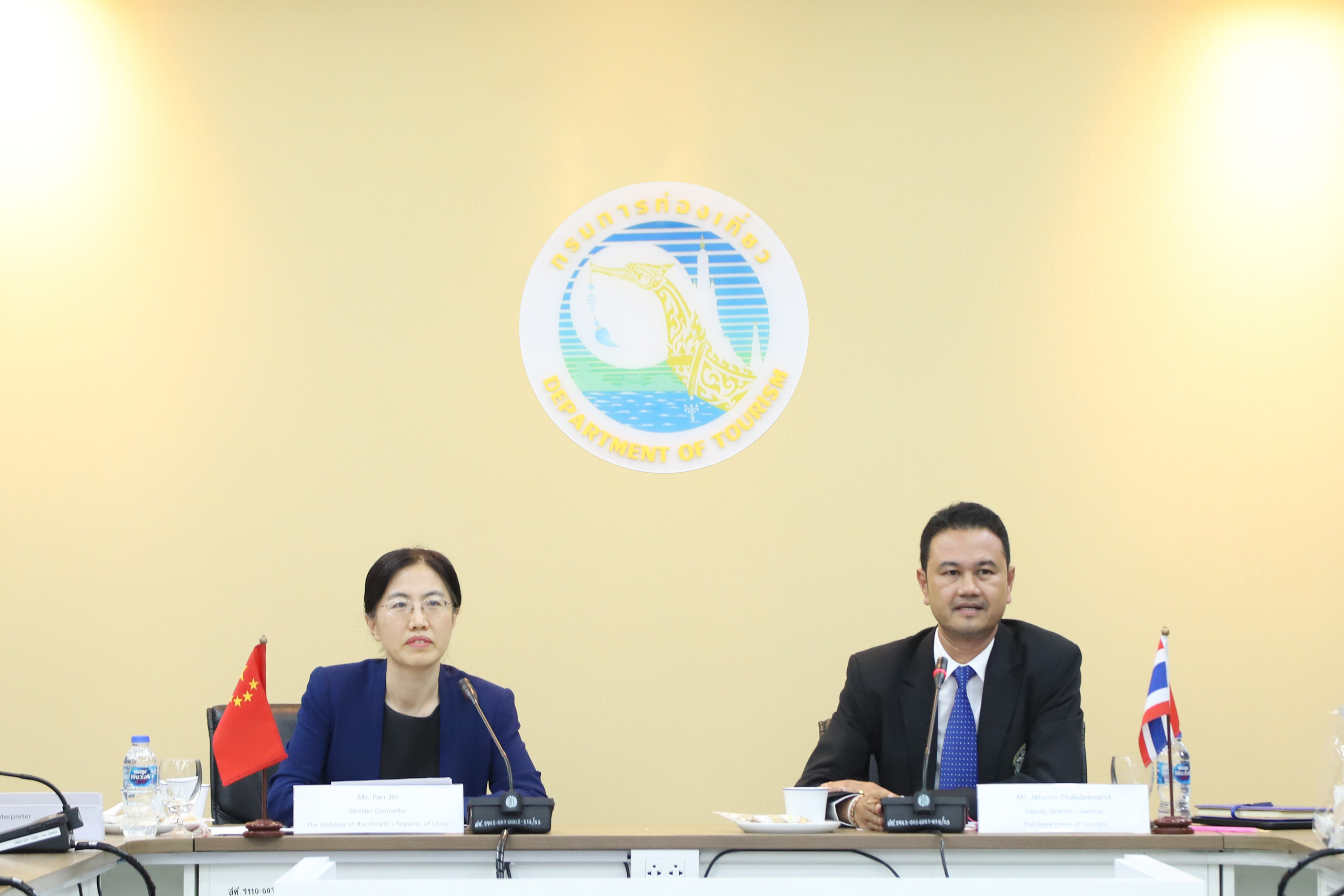 กรมการท่องเที่ยวจับมือสถานเอกอัครราชทูตสาธารณรัฐประชาชนจีนประจำประเทศไทย หารือแนวทางดูแลความปลอดภัยนักท่องเที่ยวจากจีน พร้อมเสนอความพร้อมมาตรการความปลอดภัยของไทย
