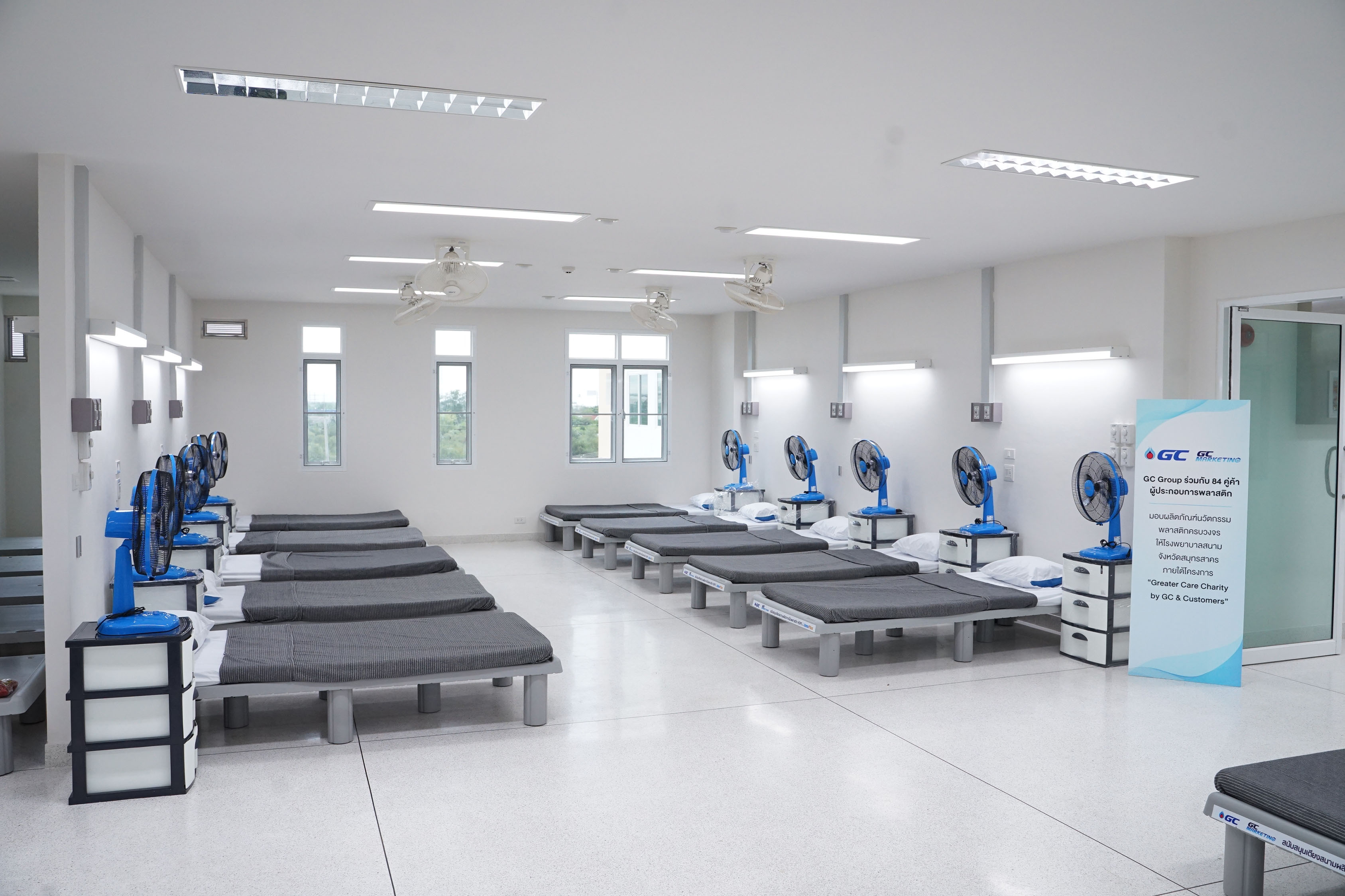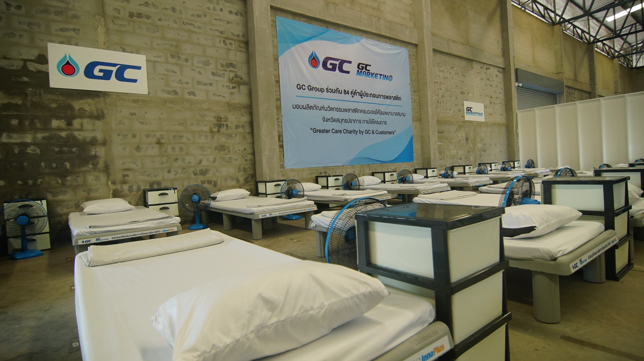 นายแพทย์ นเรศฤทธิ์ ขัดธะสีมา นายแพทย์สาธารณสุขจังหวัดสมุทรสาคร คุณชวลิต ทรงกิตติ นายอำเภอบางบ่อ จังหวัดสมุทรปราการ คุณปิยะ ปิตุเตชะ นายกองค์การบริหารส่วนจังหวัดระยอง ในฐานะผู้รับมอบอุปกรณ์จากโรงพยาบาลสนามในพื้นที่ทั้ง 3 จังหวัด ร่วมกล่าวว่า ต้องขอขอบคุณ GC GCM และทุกท่านที่ได้ช่วยเหลือและสนับสนุนการสร้างโรงพยาบาลสนามและศูนย์พักคอยแห่งใหม่ นี้ โดยเราเชื่อว่านอกจากบุคลากรทางการแพทย์ด่านหน้าที่มีความพร้อมแล้ว อุปกรณ์ที่ผลิตจากนวัตกรรมพลาสติกต่างๆ อาทิ เตียงสนามสำหรับผู้ป่วย ชุดกาวน์กันน้ำ (PE Gown) ชุด Reusable PPE Gown ถุงขยะและถังขยะป้องกันการติดเชื้อที่ผลิตจากพลาสติก ตู้ล็อคเกอร์เก็บของ คุณภาพดี ทั้งหมดที่ทุกท่านนำมาบริจาคจะเป็นอุปกรณ์ที่สำคัญในการช่วยเหลือผู้ป่วยโควิด 19 ในพื้นที่เสี่ยงสูง ให้ปลอดภัย และผ่านพ้นวิกฤตในครั้งนี้ไปด้วยกัน