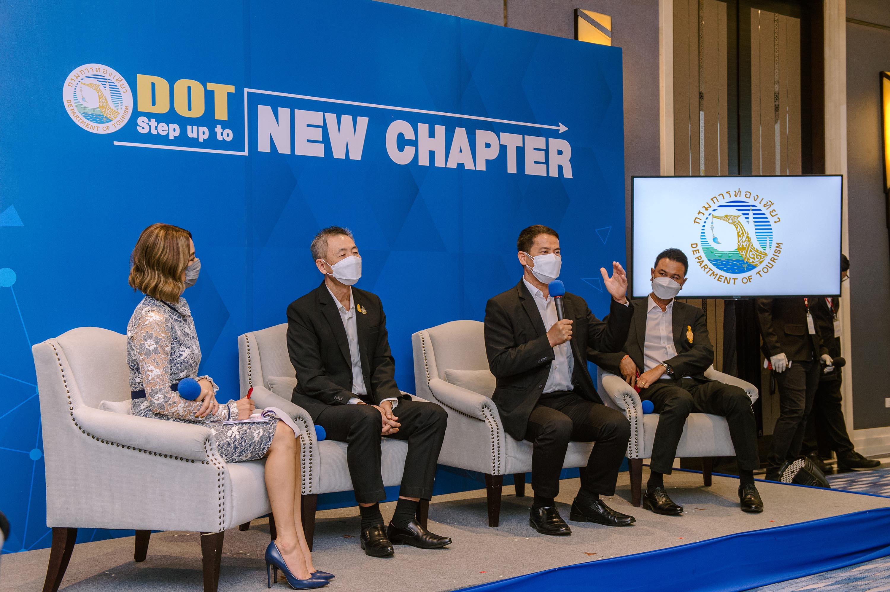 นายทวีศักดิ์ วาณิชย์เจริญ อธิบดีกรมการท่องเที่ยว เปิดเผยว่า กรมการท่องเที่ยว กระทรวงการท่องเที่ยวและกีฬา เป็นหน่วยงานที่กำกับดูแลด้านการท่องเที่ยว ภายใต้การดำเนินกิจกรรมหลากหลายรูปแบบ เพื่อพัฒนาสินค้าและบริการด้านการท่องเที่ยว รวมถึงการจัดทำมาตรฐานการท่องเที่ยวไทย ตลอดจนส่งเสริมการท่องเที่ยวที่เน้นความสะอาด ปลอดภัยเป็นธรรม เพื่อการท่องเที่ยวยั่งยืน ภายใต้โมเดลเศรษฐกิจแบบใหม่ หรือ BCG Model ดังนั้น การดำเนินโครงการและกิจกรรมต่างๆ ภายหลังผ่านวิกฤตโควิด-๑๙ จึงถือเป็นก้าวสำคัญที่กรมการท่องเที่ยวจะพัฒนารูปแบบการทำงาน เพื่อผลักดันโครงการและกิจกรรมต่างๆ ภายใต้แนวคิด DOT : Step up to New Chapter ด้วย 5 องค์ประกอบหลักที่สำคัญ