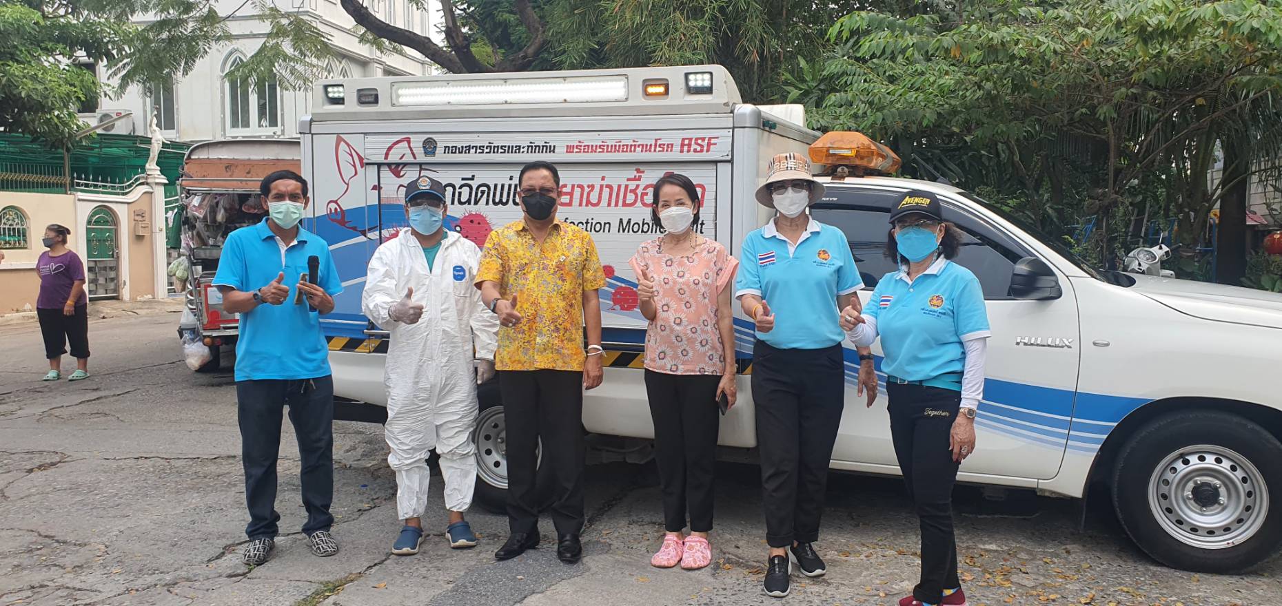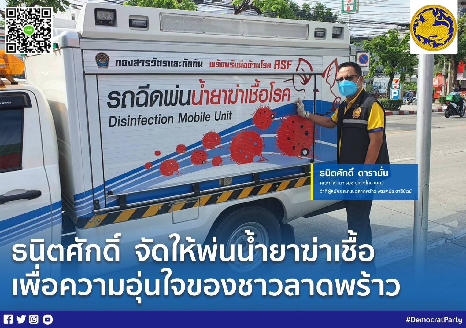 เมื่อเร็วๆ นี้ ว่าที่.ร.ต.ธนิตศักดิ์ ดารามั่น ทำงานรัฐมนตรีช่วยว่าการกระทรวงมหาดไทย/ประสานงานกระทรวงเกษตรและสหกรณ์กรมปศุสัตว์จัดรถโมบายพ่นน้ำยาฆ่าเชื้อโควิด 19 ตามที่พี่น้องประชาชนแจ้งเรื่องมาโดยในวันนี้ได้ดำเนินการพ่นน้ำยาฆ่าเชื้ออยู่ที่บริเวณหมู่บ้านร่มรื่น, หมู่บ้านระเบียงทอง และ หมู่บ้านเลิศอุบลข้างกองปราบ ซึ่งจากสถานการณ์การแพร่ระบาดของ covid 19 แพร่พันธุ์ใหม่ที่ผ่านมาในวันนี้มีพี่น้องประชาชนโดยเฉพาะแถวลาดพร้าวที่แจ้งเรื่องผ่านมายังตนในการหาสถานที่พักรักษาตัวเนื่องจากสมาชิกภายในบ้านได้รับเชื้อ covid19 สายพันธุ์ใหม่และมีบางส่วนต้องถูกกักตัวเพื่อดูอาการโดยไม่ปิดบังข้อมูลแต่อย่างใดทำให้ต้องปฏิบัติการเชิงรุกด้วยการพ่นน้ำยาฆ่าเชื้อเป็นการสร้างขวัญและกำลังใจสร้างความมั่นใจให้กับพี่น้องประชาชนในพื้นที่สุ่มเสี่ยงโดยจะประเมินสถานการณ์ดูความชัดเจนและความต้องการของพี่น้องประชาชนเป็นหลักส่วนบ้านใดที่มีสมาชิกภายในบ้านกับตัวเพื่อดูอาการก็จะประสานส่วนราชการที่รับผิดชอบโดยตรงเข้ามาดูแลนอกจากนี้เบื้องต้นยังได้จัดถุงปันสุขเพื่อเยี่ยมเยียนในโอกาสต่อไป