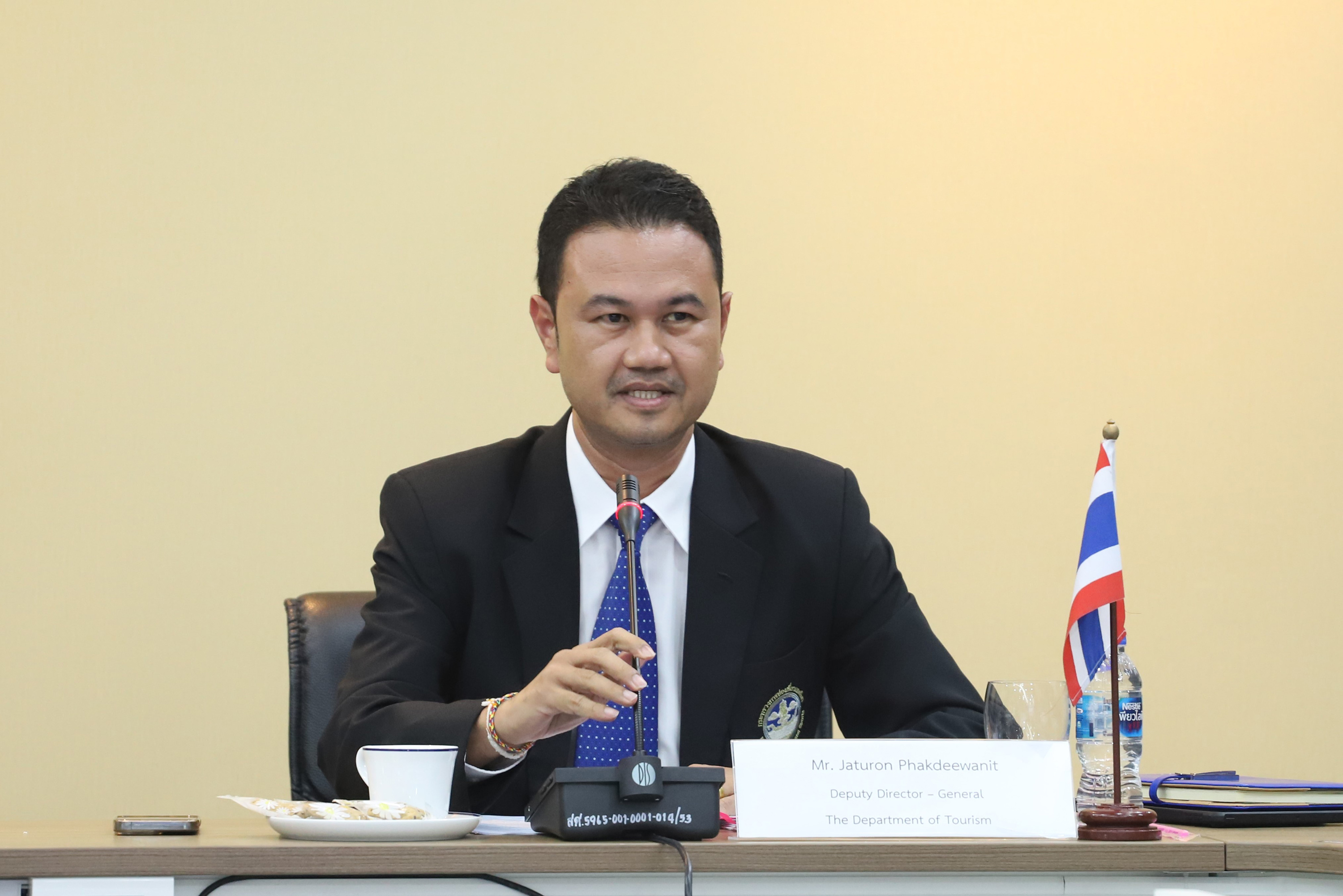 นายจาตุรนต์ ภักดีวานิช รองอธิบดีกรมการท่องเที่ยว และ Ms. Pan Jin ที่ปรึกษาและกงสุลใหญ่ สถานเอกอัครราชทูตสาธารณรัฐประชาชนจีนประจำประเทศไทยและคณะ พร้อมด้วยผู้แทนจากสำนักงานปลัดกระทรวงการท่องเที่ยวและกีฬา กรมการขนส่งทางบก กรมเจ้าท่า กองบัญชาการตำรวจท่องเที่ยว สำนักงานตรวจคนเข้าเมือง การท่องเที่ยวแห่งประเทศไทย สภาอุตสาหกรรมท่องเที่ยวแห่งประเทศไทย  บริษัท ท่าอากาศยานไทย จำกัด (มหาชน) สมาคมไทยธุรกิจการท่องเที่ยว สมาคมมัคคุเทศก์อาชีพแห่งประเทศไทย และสมาคมประกอบการธุรกิจท่องเที่ยวสัมพันธ์ไทย – จีน ร่วมประชุมหารือแนวทางดูแลความปลอดภัยสำหรับนักท่องเที่ยวจากสาธารณรัฐประชาชนจีน